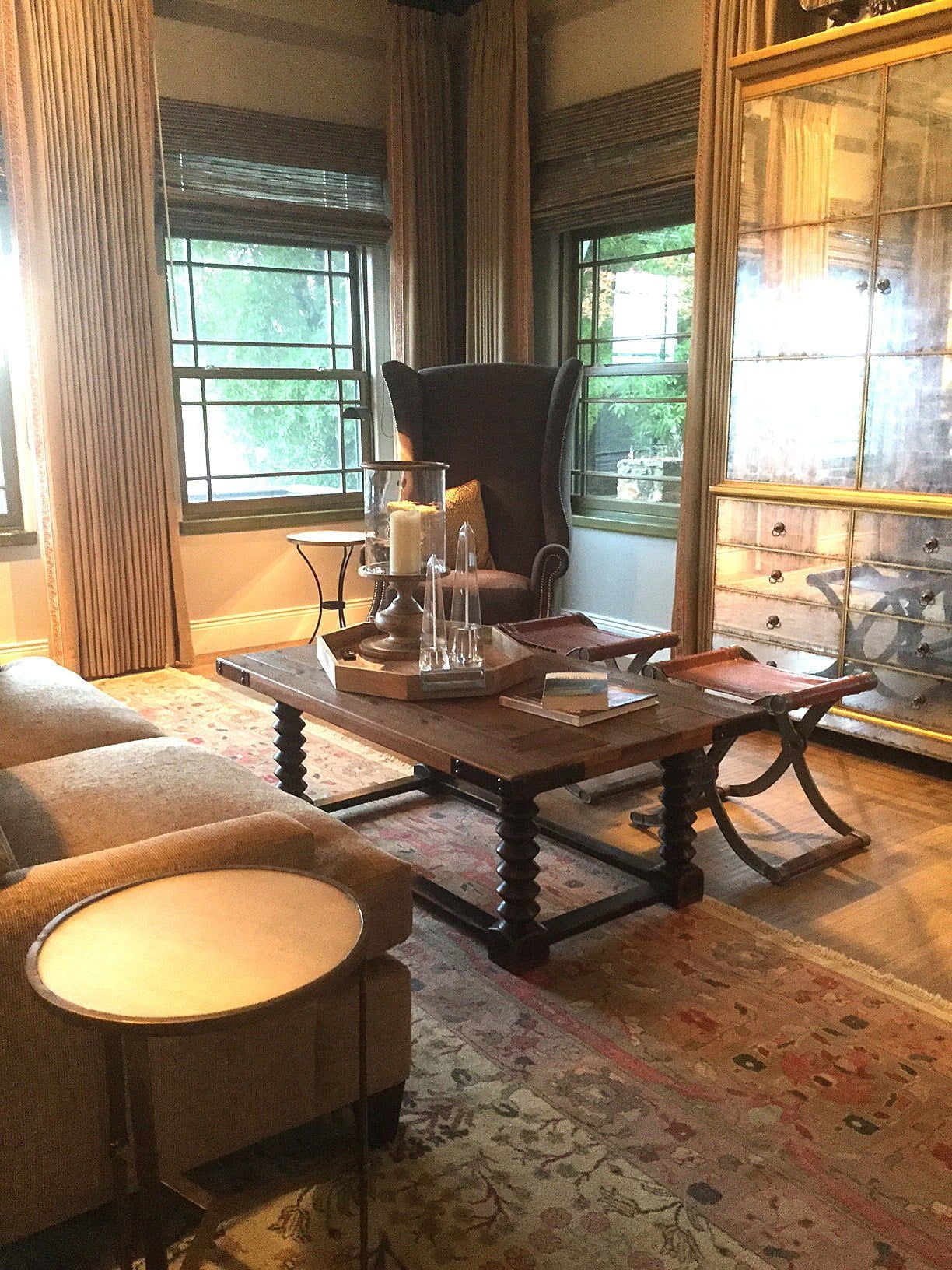 Another space offers the feel of a public living room for entertaining rather than just a sitting area. We turned another area of the living room into a space for watching television or reading in a quiet, cozy setting. Creating smaller, functional spaces within the larger space creates intimacy within the overall room.